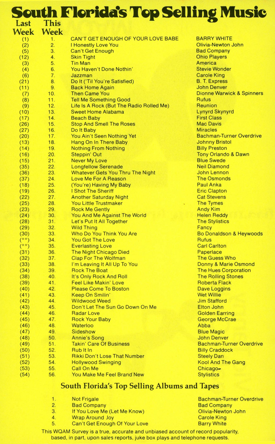 WQAM FABULOUS 56 SURVEY FOR WEEK ENDING OCT. 19, 1974 |