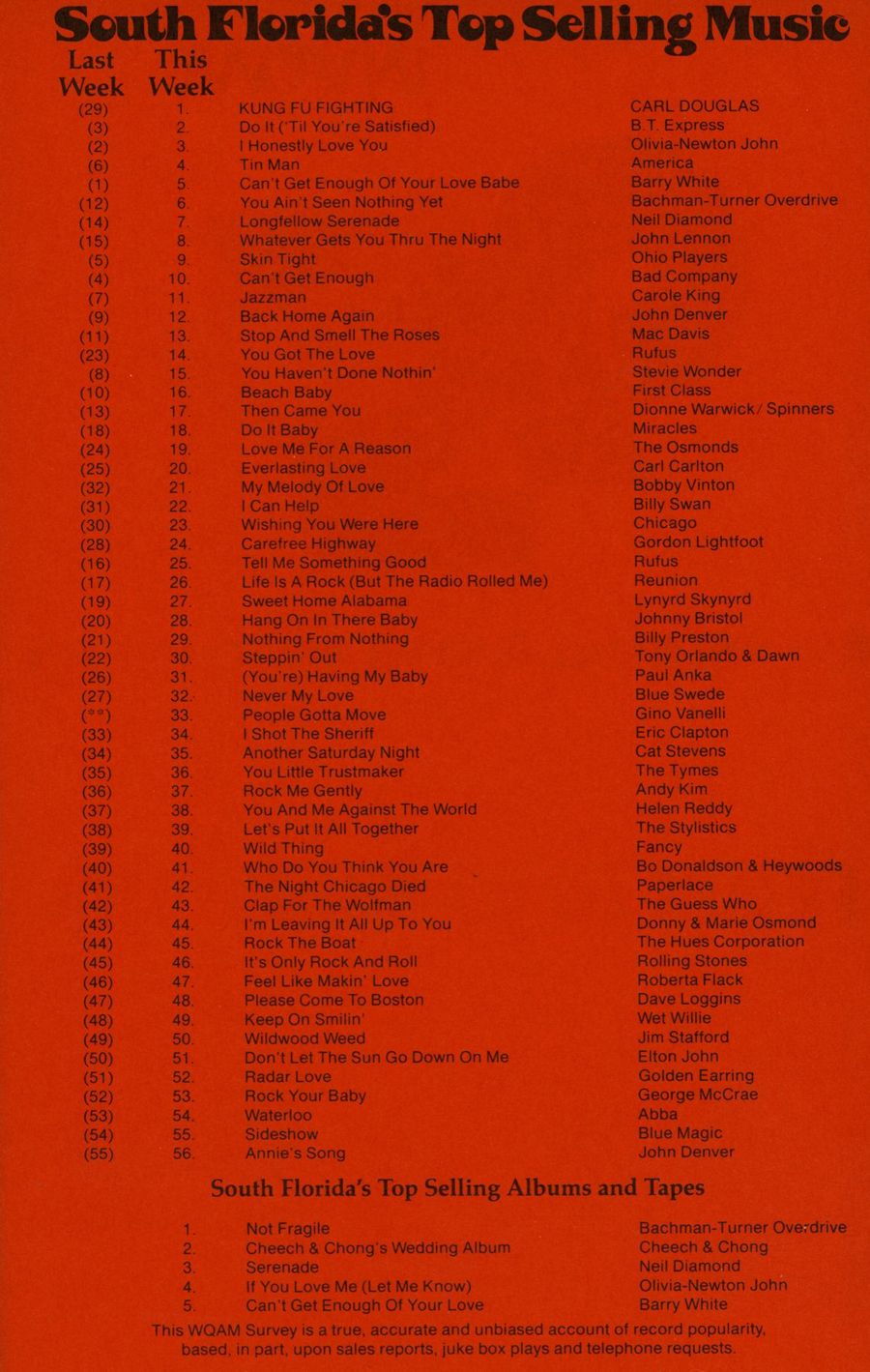 WQAM FABULOUS 56 SURVEY FOR WEEK ENDING NOV. 2, 1974 |