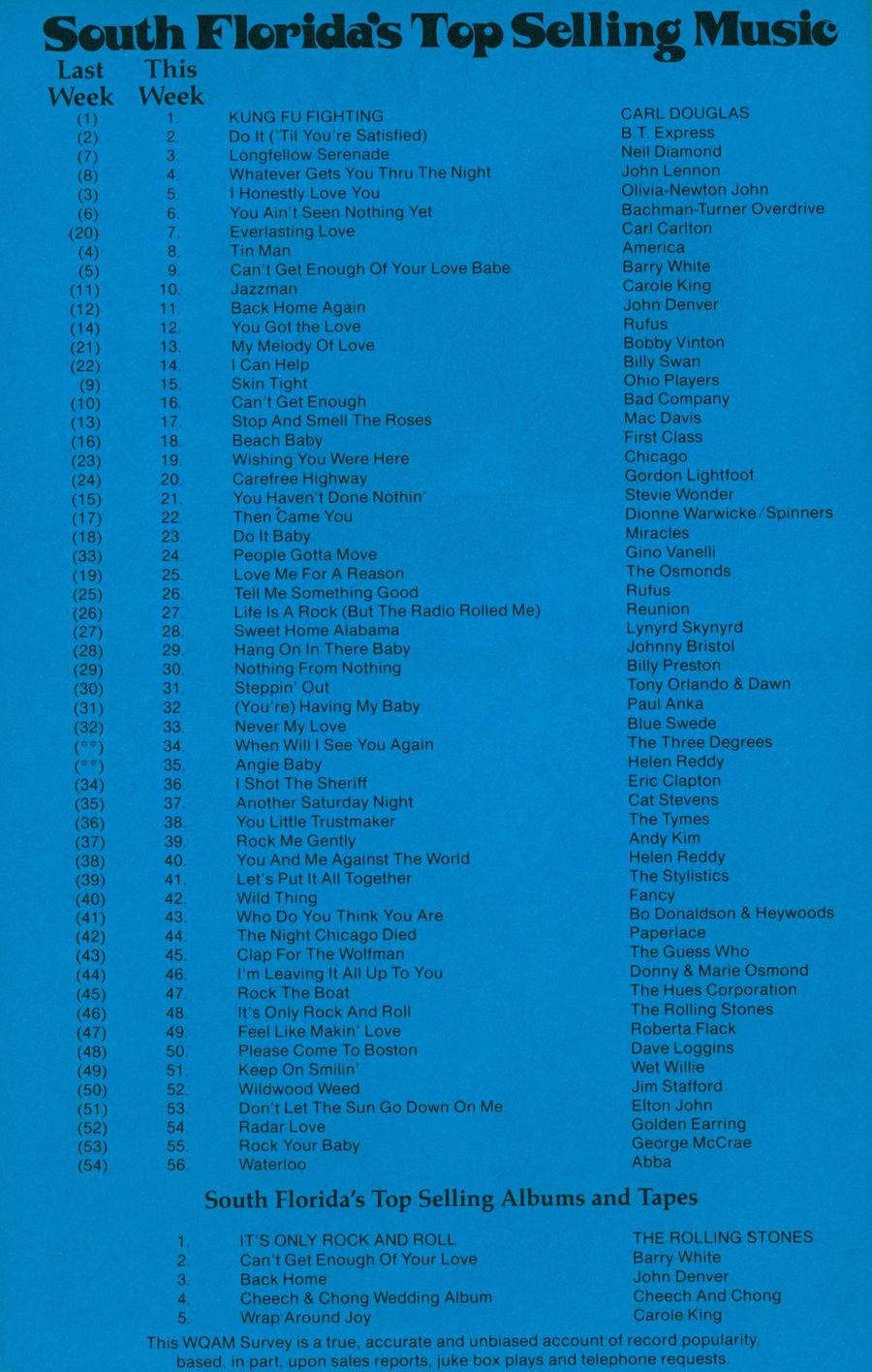 WQAM FABULOUS 56 SURVEY FOR WEEK ENDING NOV. 9, 1974 |