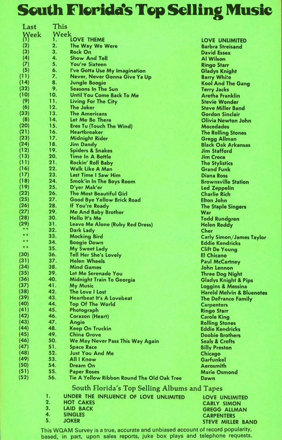 WQAM FABULOUS 56 SURVEY FOR WEEK ENDING FEB. 9, 1974 |