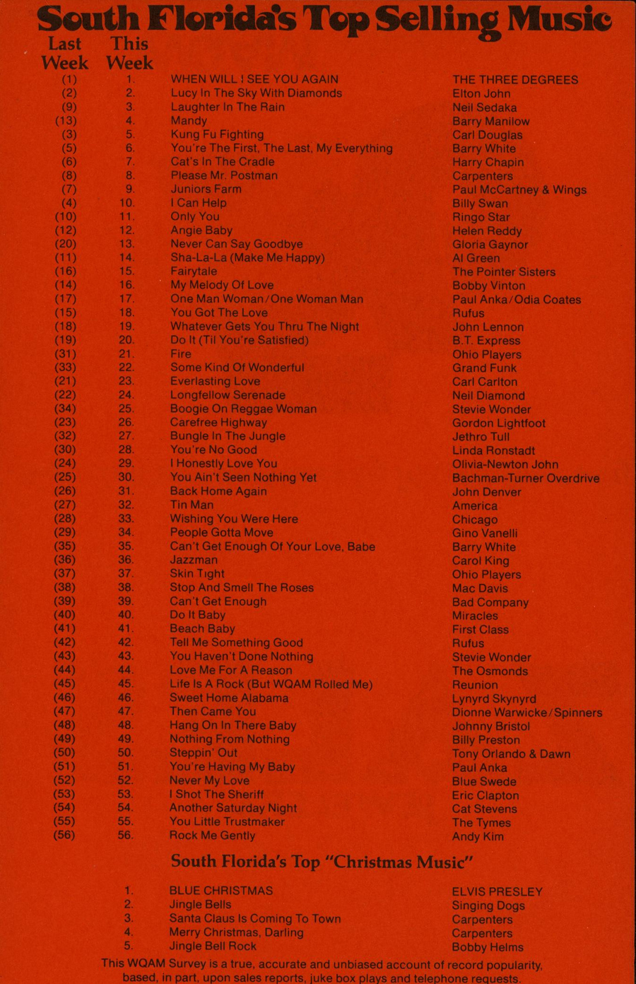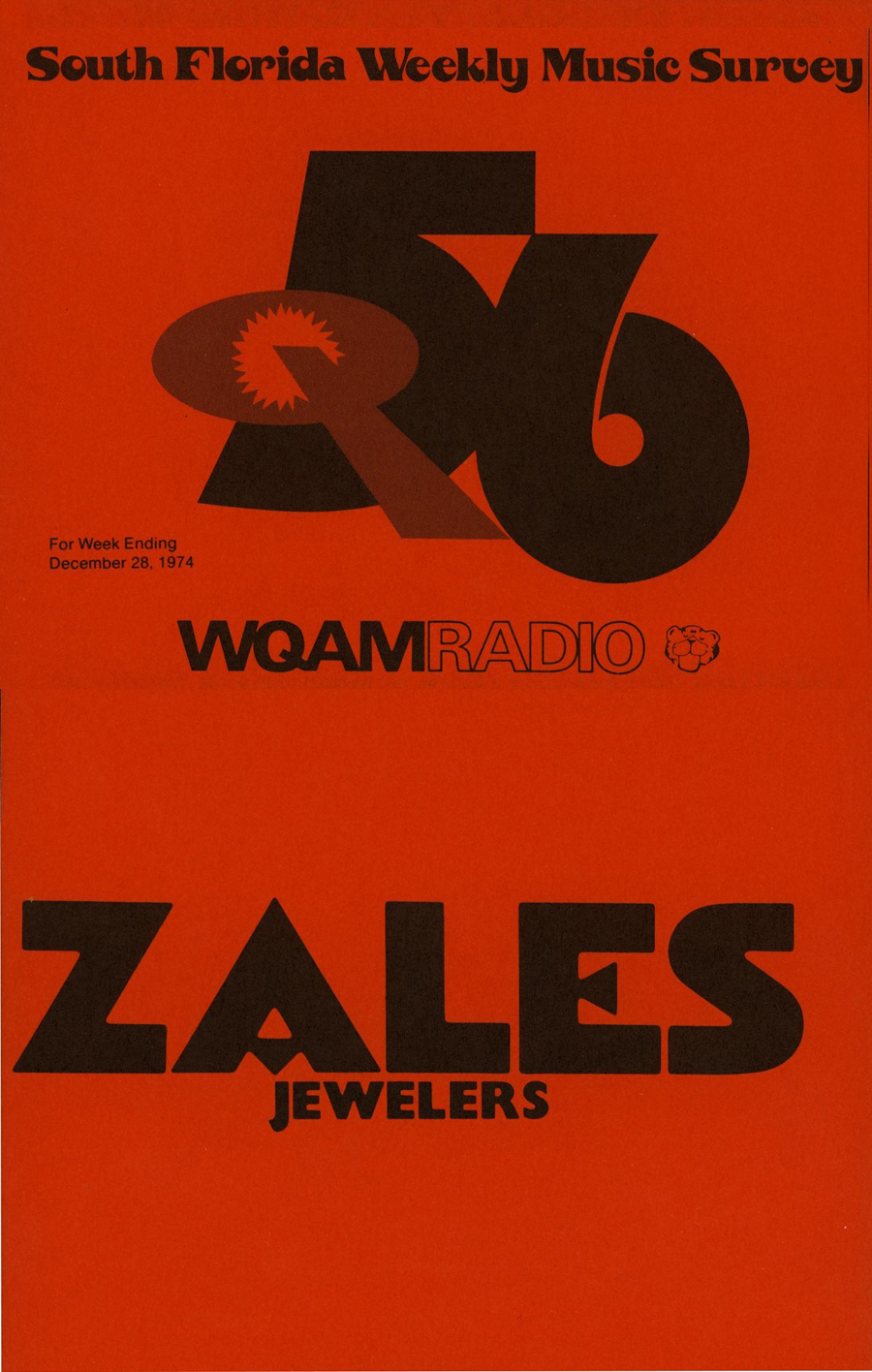WQAM FABULOUS 56 SURVEY FOR WEEK ENDING DEC. 28, 1974 |