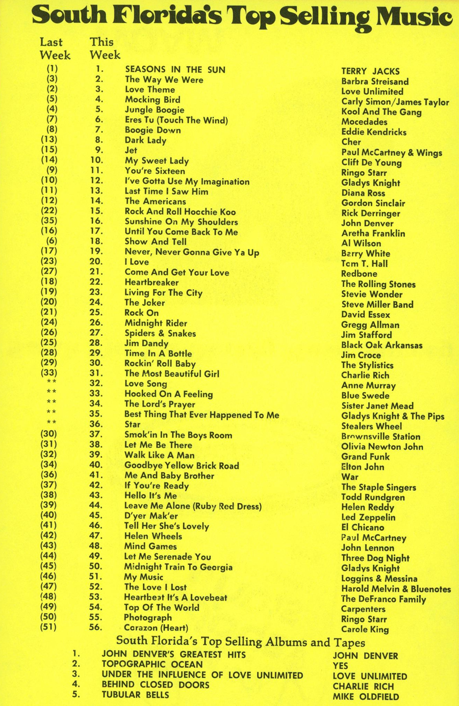 WQAM FABULOUS 56 SURVEY FOR WEEK ENDING MARCH 2, 1974 |