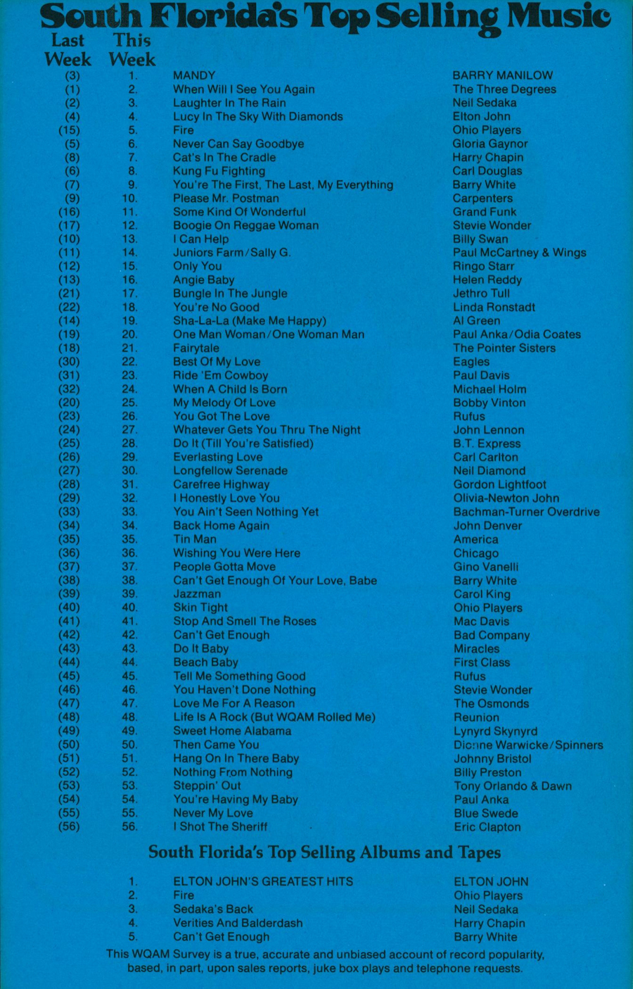 WQAM FABULOUS 56 SURVEY FOR WEEK ENDING JAN. 11, 1975 |