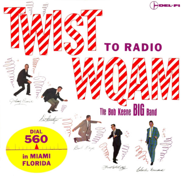 Twist to Radio WQAM by the Bob Keene Big Band. Del-Fi Records Covers of various hits. Only the front cover is customized for WQAM.Track Listing Side 1 Side 2 	1.	Twist and Freeze 	2.	Mack the Knife 	3.	Ballin’ the Jack 	4.	What’d I Say 	5.	La Bamba 	6.	The Peppermint Twist 	1.	Twistin’ the Saints 	2.	The Hucklebuck 	3.	Boogie Woogie Twist 	4.	Twelth Street Rag 	5.	The Twist