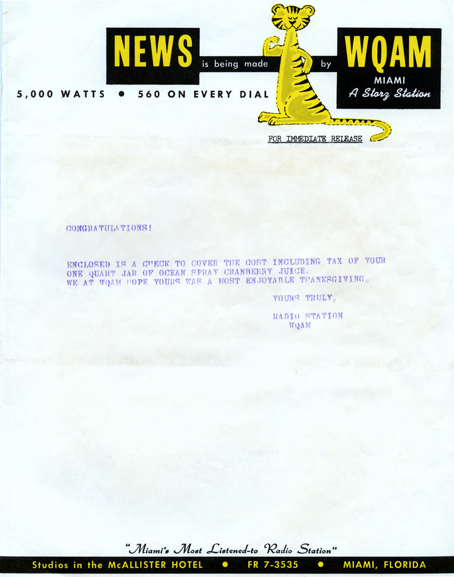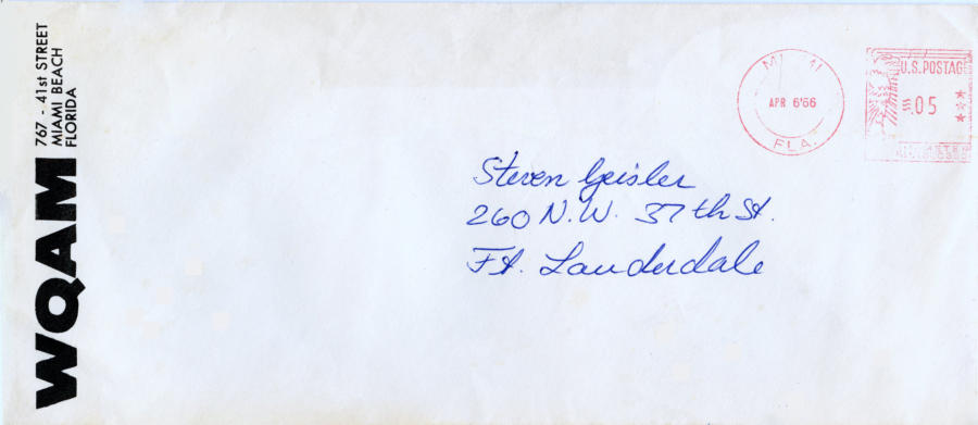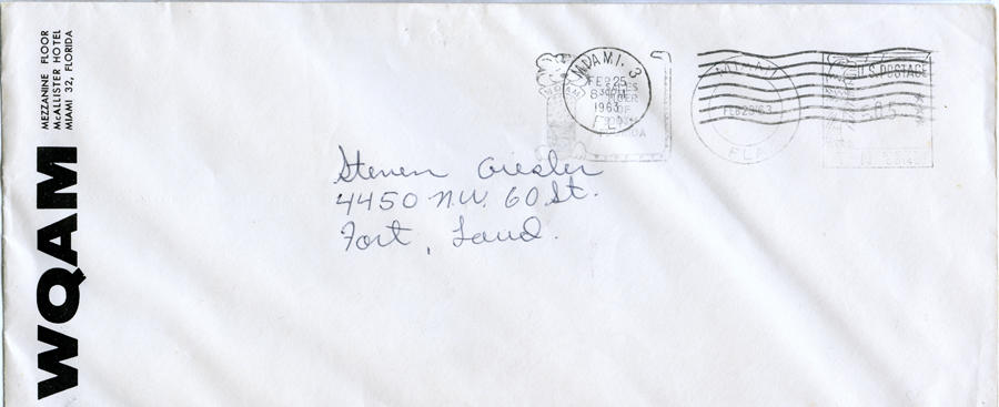 WQAM McAllister Hotel Letter and Envelope Feb. 25, 1963