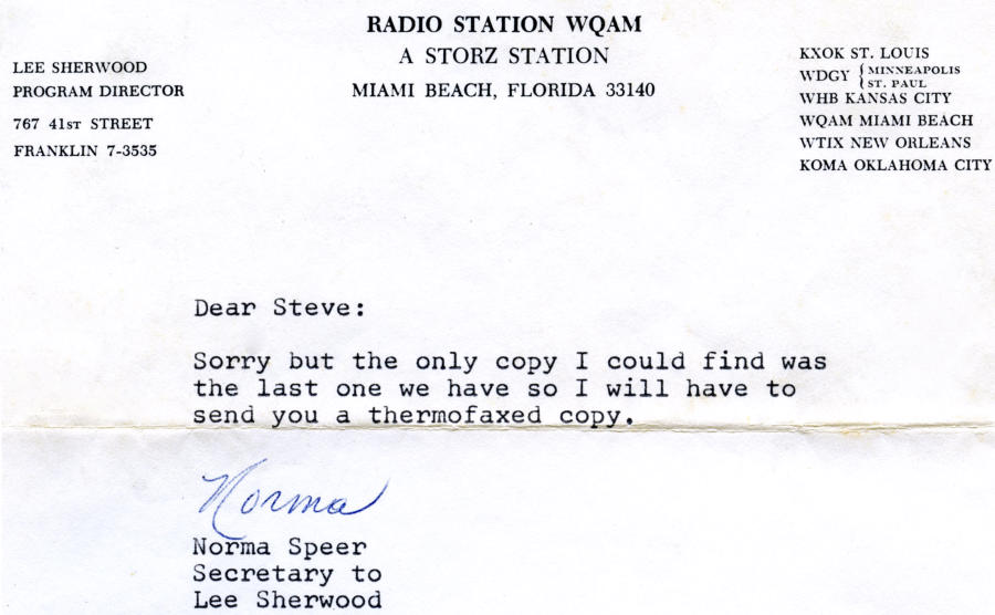 WQAM Lee Sherwood 767 41st St. Miami Beach